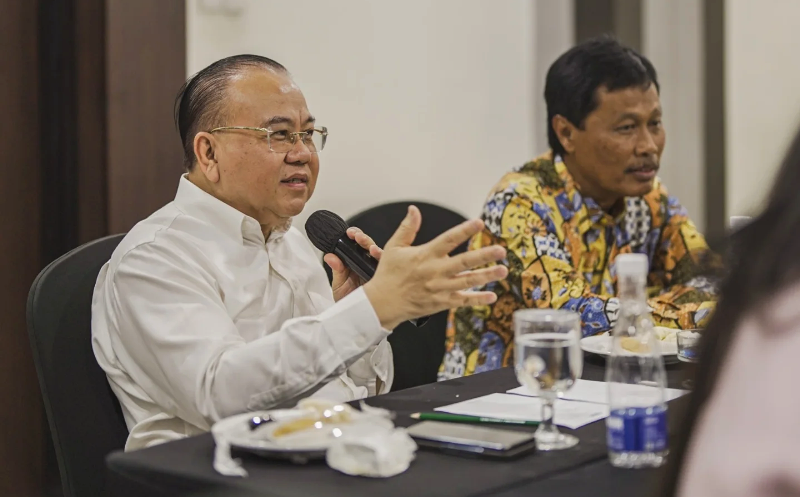CEO Kagum Group Henry Husada (memegang mic) saat menyampaikan pemaparan di acara kunjungan Wali Kota Cirebon Effendi Edo di Hotel Gino Feruci Braga sebagai salah satu property Kagum Hotels di Bandung, pada 4 Desember 2025. (Foto: Turisian.com/Ist)