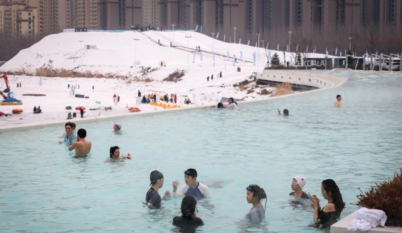 Kombinasi antara wisata es dan salju dengan mata air panas terbukti mampu menarik pengunjung dari berbagai daerah di China.