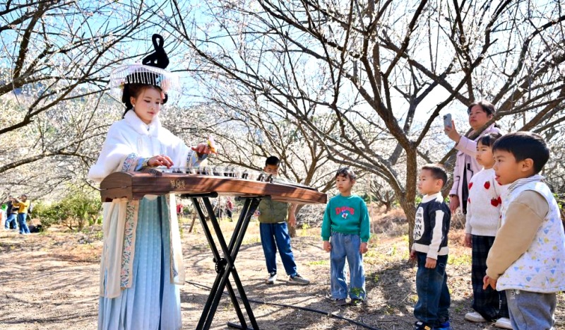 Sejak pagi, taman bunga plum di kawasan perbukitan Yongtai telah dipadati pengunjung.